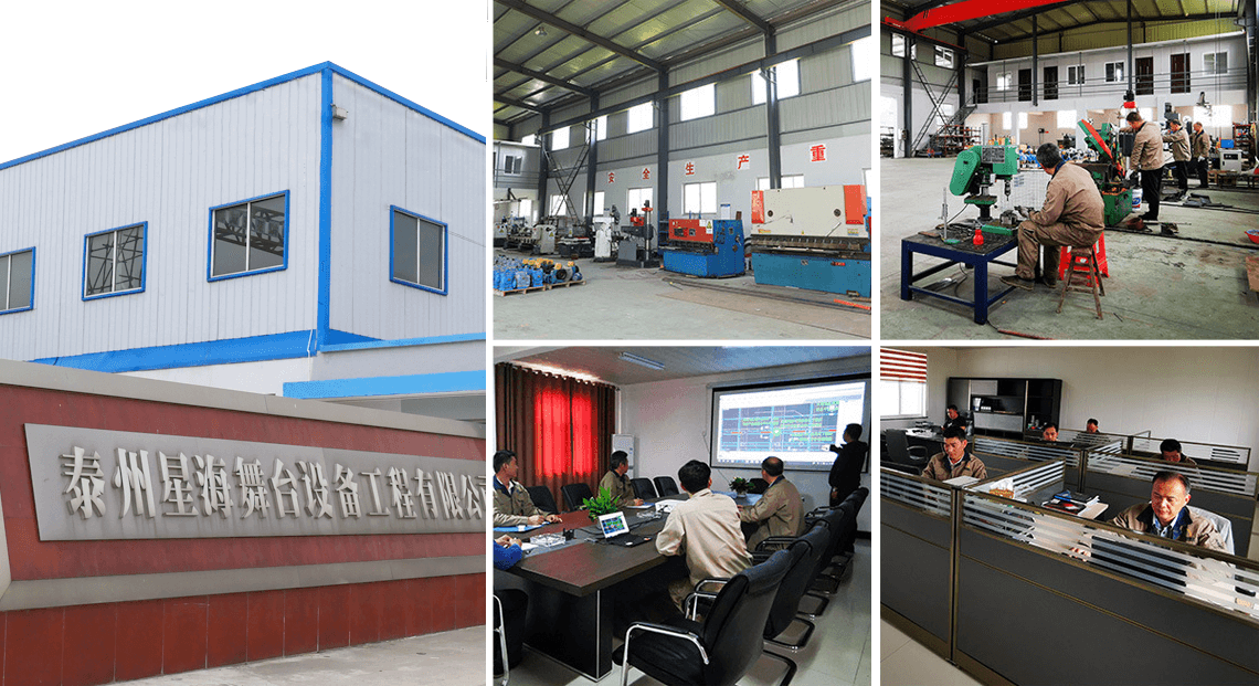 江蘇星海舞臺設備工程有限公司是一家以高新技術為先導,以設備生產、工程設計、工程承包、工程施工、技術咨詢、技術服務、科研開發、生產銷售為一體的,是一家專業的舞臺機械生產公司;公司占地面積約5000平米,擁有多條專業生產線,公司研發部門、設計部門、生產部門、工程技術部門均引進行業內專業技術人才,公司注冊資金2000萬元,現有工程技術和管理人員約16人,公司有工程師以上資格書的約4人,星海舞臺多年來注重企業文化建設,培養員工團隊精神,不斷提高產品質量。